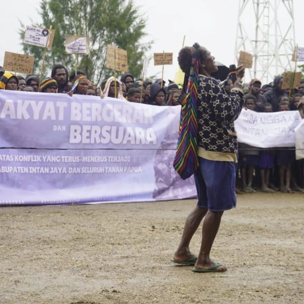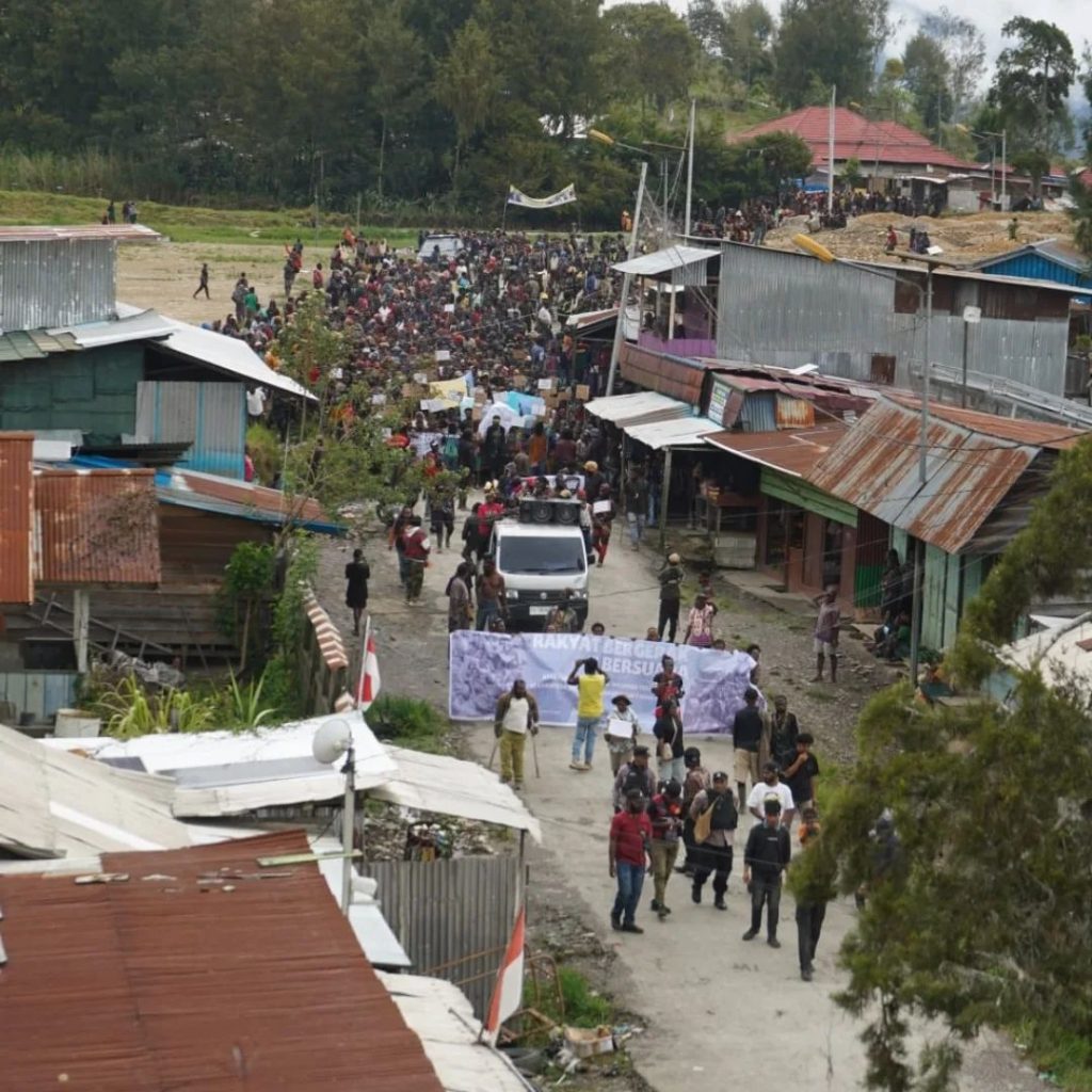 WestPapuaNews.Org – SUGAPA INTAN JAYA – On Tuesday, October 28, 2025, the people of West Papua in Intan Jaya took to the streets in Sugapa, the capital of Intan Jaya, to reject all forms of impunity and Indonesian fascist coloniser military deployment in Intan Jaya Regency.
